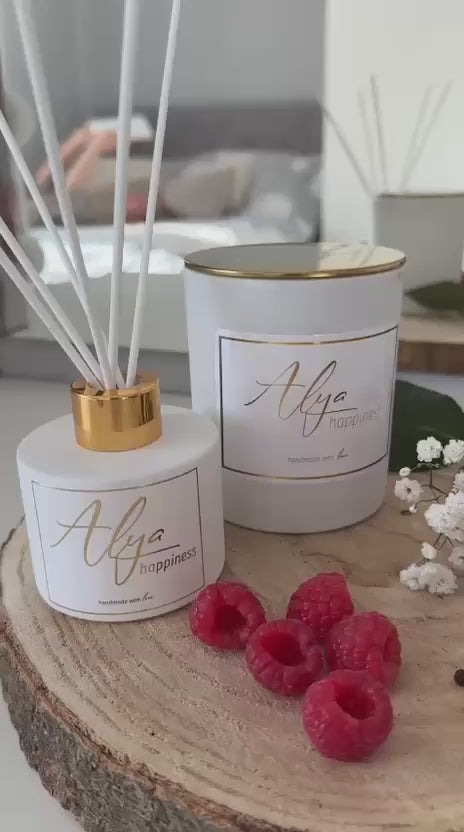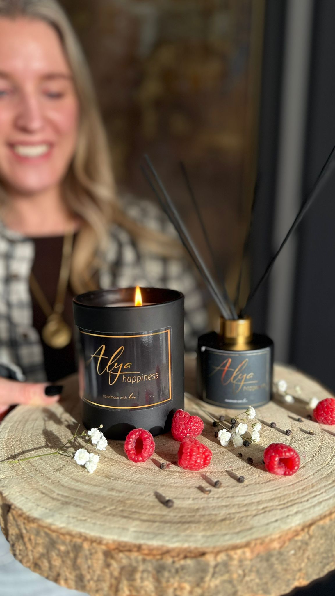 Erlebe pure Lebensfreude mit unserer Duftkerze Happiness. Fruchtige und florale Noten verschmelzen zu einem bezaubernden Duft. Spritzige Himbeere trifft auf zarte Rose und rosa Pfeffer. Diese Mischung schafft sofort eine warme, einladende Atmosphäre in deinem Raum.
