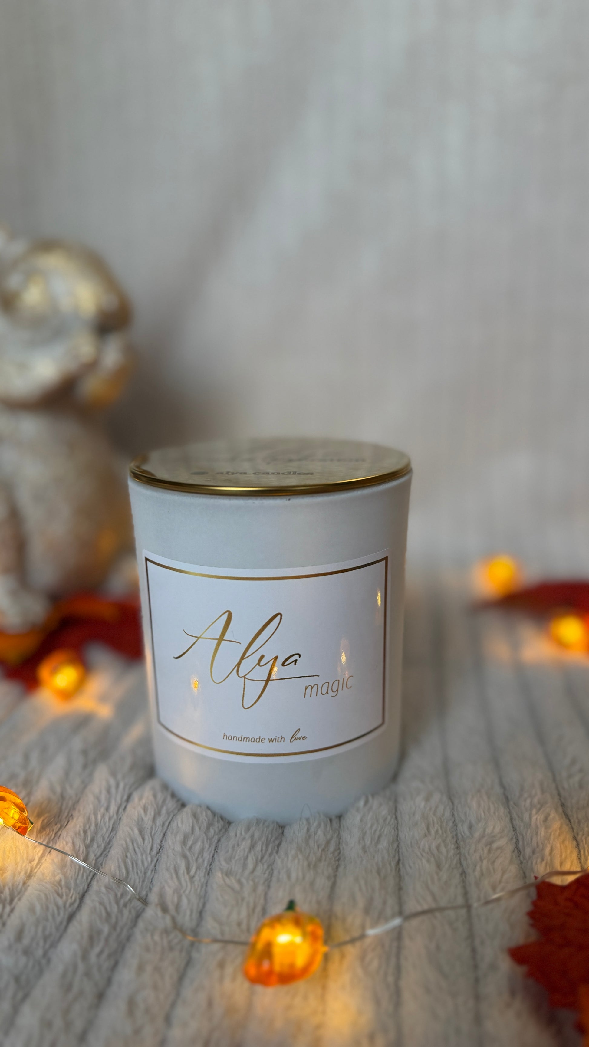 Ein unwiderstehlich würzig-süßer Duft, der das Gefühl von Herbst, Geborgenheit und Wärme einfängt – wie ein Spaziergang durch buntes Laub mit einer Tasse würziger Kürbislatte in der Hand. Jede Kerze wird in liebevoller Handarbeit gegossen und erfüllt den Raum mit luxuriöser, saisonaler Gemütlichkeit.