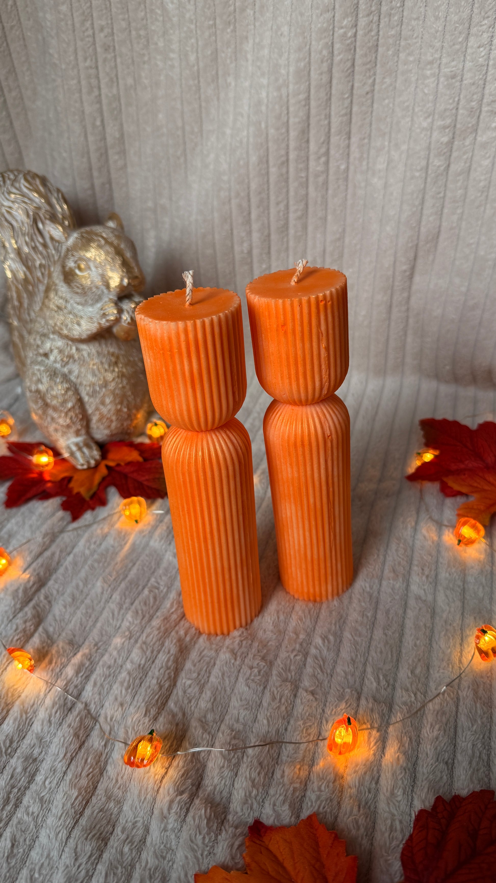 Handgegossene Rippen-Kerzen aus Sojawachs – Herbstorange